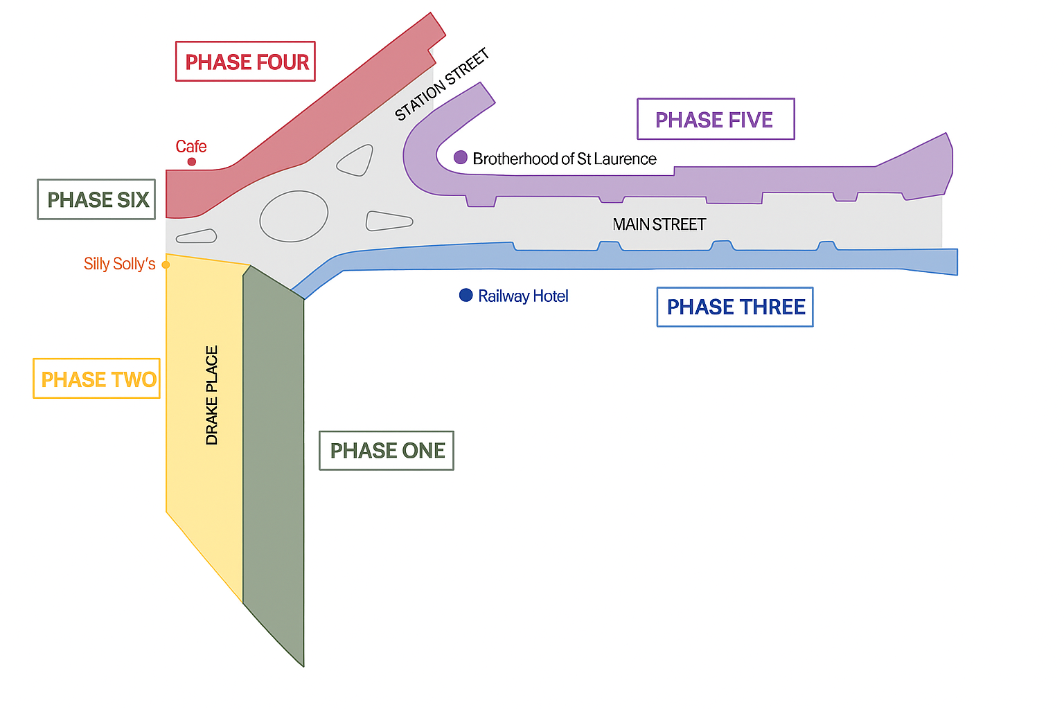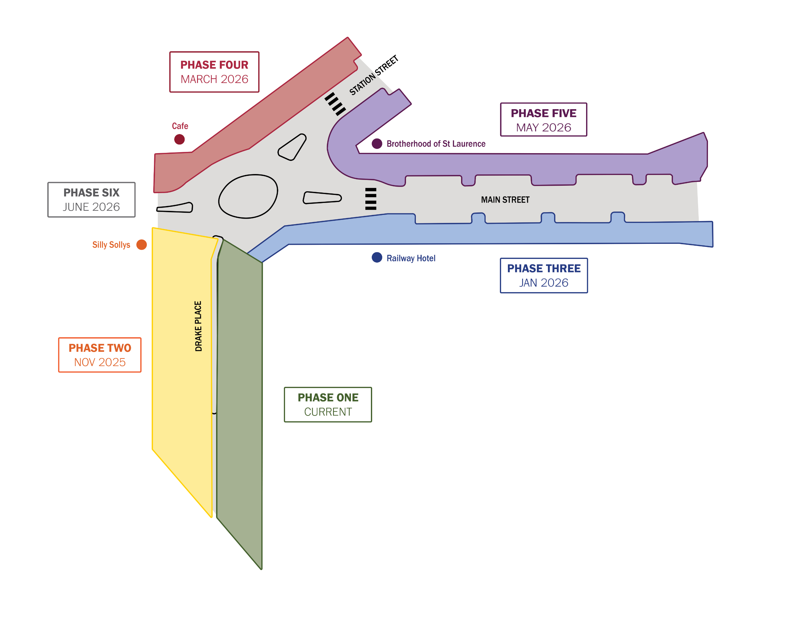 Stage 1 works along the Main Street Gateway precinct (near the Railway Hotel) will include upgrades between Drake Place and the Henty Street roundabout.